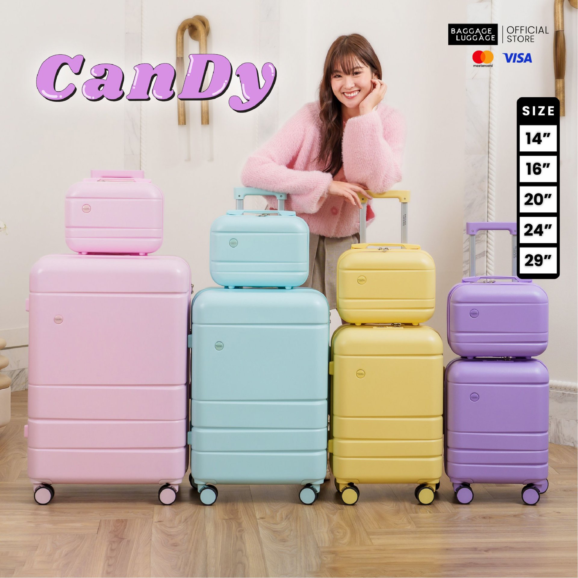 แคนดี้คอลเลคชั่นกระเป๋าเดินทางเฟรมซิป ที่สุดของความคิ้วท์ แถมน้ําหนักเบา [รับประกัน 1 ปี]